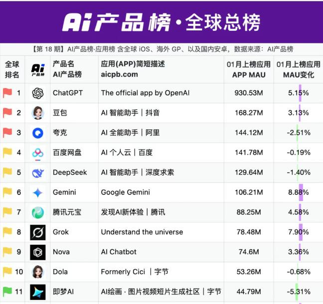 始于2014年的春节红包营销,之是以历经多年仍被大厂沿用,除契合春节浪费场景外,其强用户感知、高酬酢裂变的属性,使其成为现时AI行业高获客资本布景下的最优拉新旅途之一。举例,豆包、元宝、千问在2026年1月移动应用增长榜中,区别位列TOP1、TOP5、TOP6。