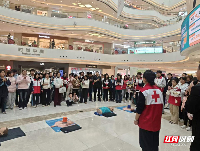 湖南管事东谈主事行状学院红十字志愿服务队来到长沙县松雅湖吾悦广场开展“传递讲究呵护人命”救急救护学问提高讲究奉行行动。