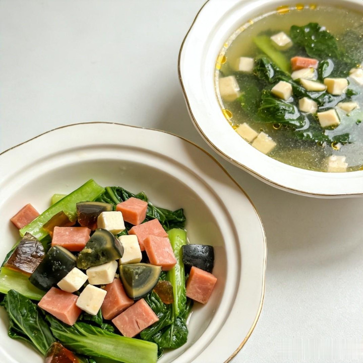 这里“上汤”可用粗造口头制作:用皮蛋、瘦肉丝或火腿丝,加姜片煸炒出香,冲入滚水,小火煮几分钟即成浮浅上汤。芥菜(或大棵荠菜)洗净,对半切开。将措置好的芥菜放入上汤中煮熟,加盐调味即可。汤色廓清,菜质柔软,最大规章地保留了食材的本味与养分。