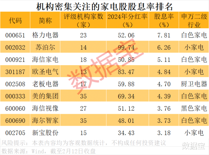 具体到A股市集上的投资契机而言,高股息率的优质公司永恒发挥值得不雅察。数据显露,10家以上机构评级的家电股中,格力电器、苏泊尔、海信家电等个股股息率均超3%。从分成率角度来看,苏泊尔2024年分成率接近100%,居首。