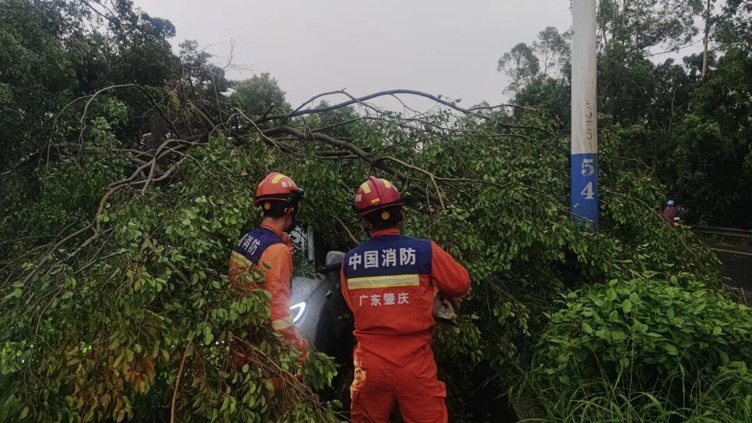 30日7时58分,在肇庆高要区,消防拯救局接到110转警:南岸街说念马安往新桥目的刚过马安红绿灯处,一辆小车被大风吹倒的树木压住,车内两东说念主被困,情况垂危。
