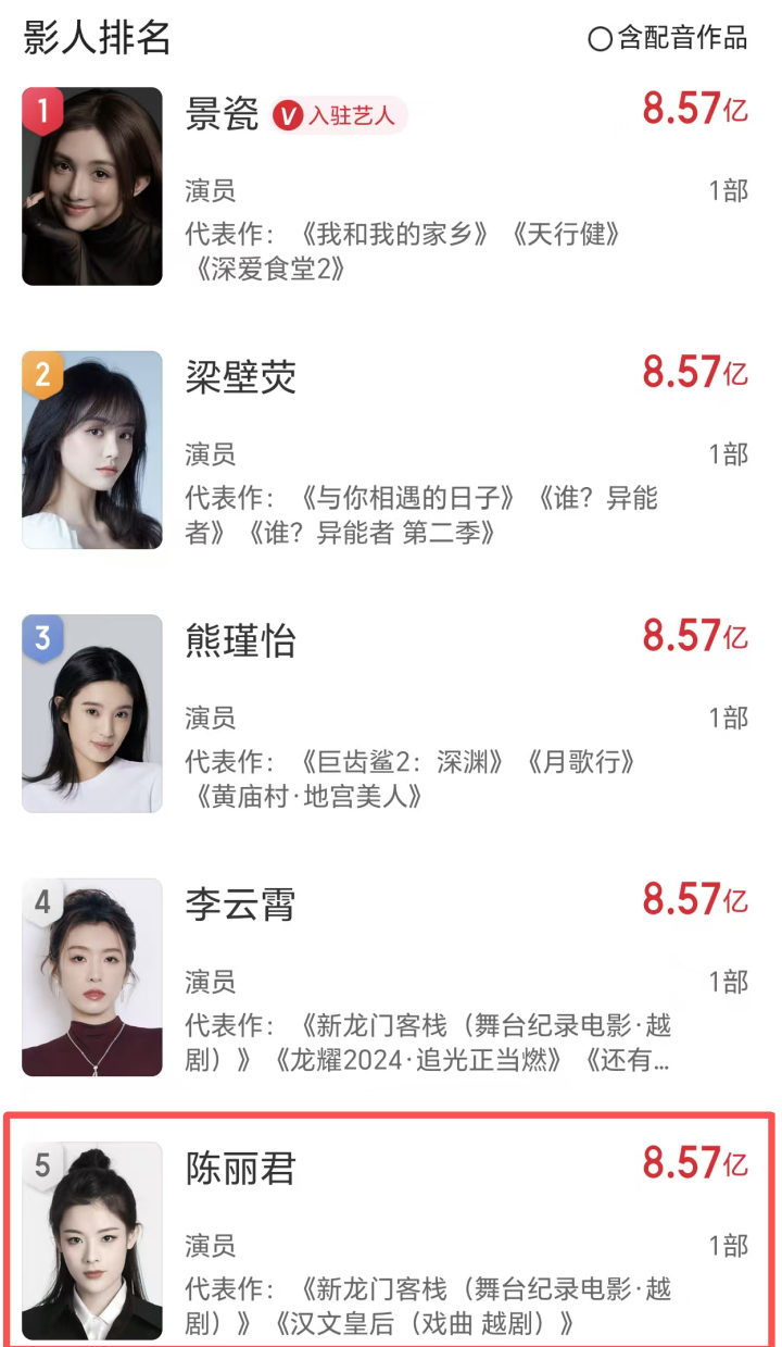 在我看来,陈丽君致使比原定女主更为适应这个变装,而她初度在大荧幕上亮相,就凭借《镖东说念主》,和另外四位女演员比肩第一,成为中国武侠票房最高的女演员之一,可谓开局即巅峰,期待陈丽君再次时间超卓,惊艳世东说念主的那天!
