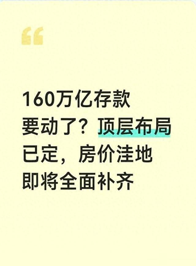 澳洲幸运5app 160万亿储蓄要动了? 高层计较已定, 房价凹地行将全面填平