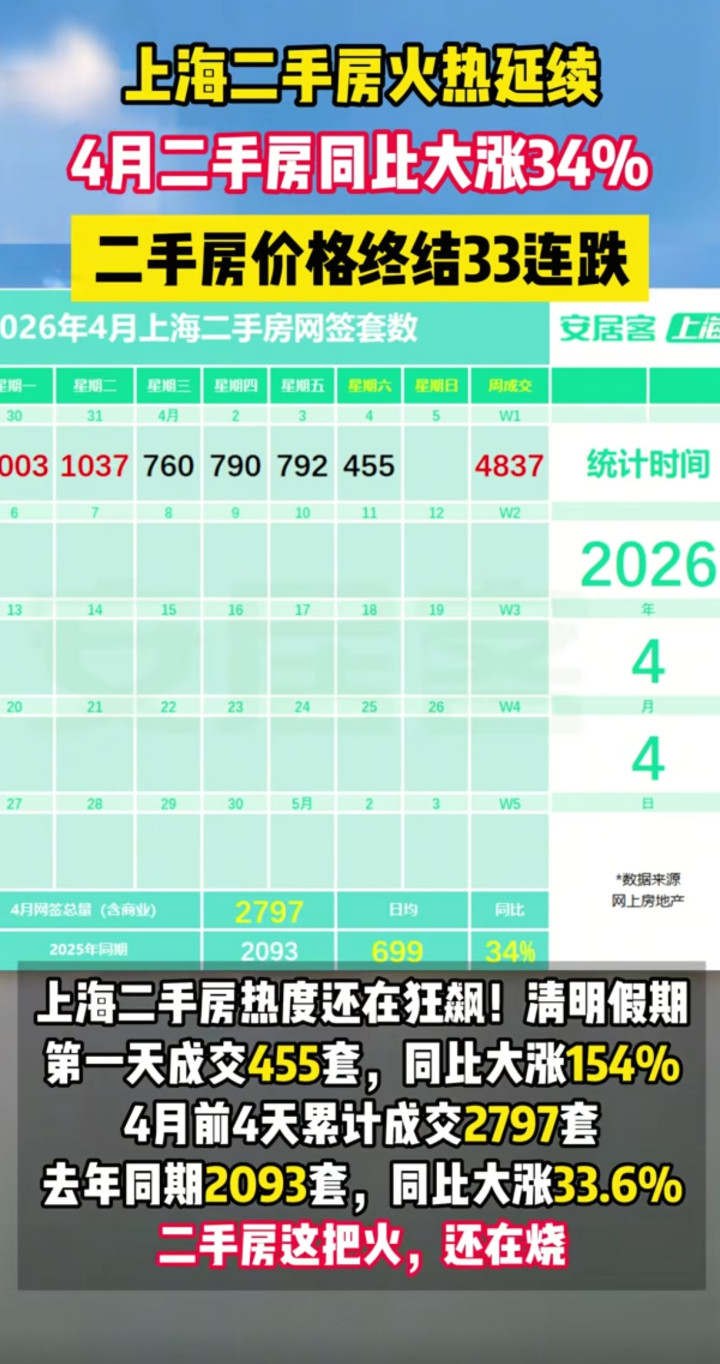 而3月份上海二手房累计成交30178套,创近五年新高,这成交量比较前年同期的28466套增长6%。