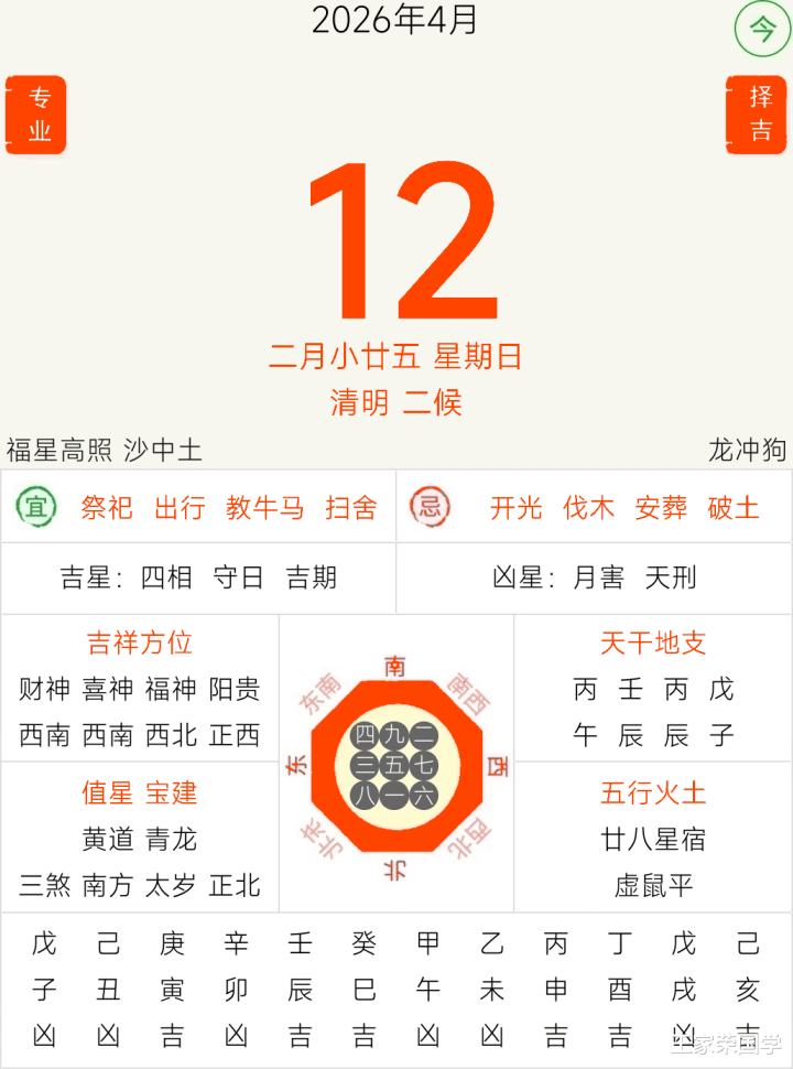 澳洲幸运5 逐日历本福祸宜忌2026年4月12日