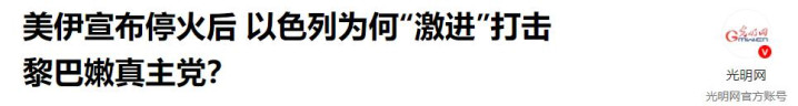 《好意思伊告示媾和后 以色列为何“激进”打击黎巴嫩真主党?》——光明网