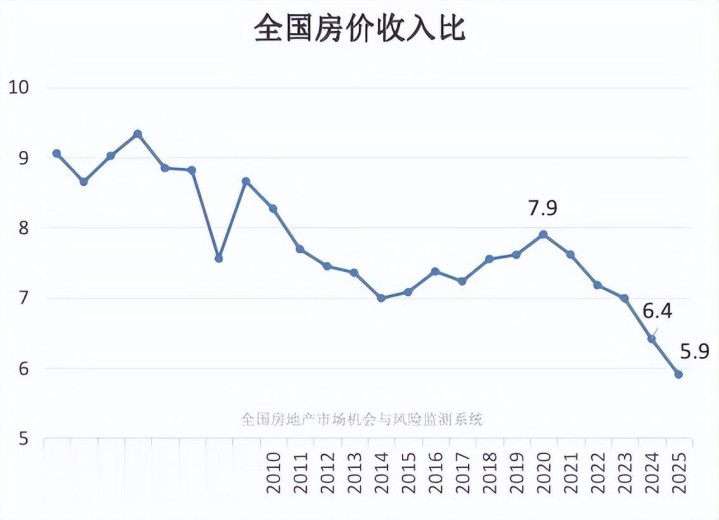 如若用“2025年最新的新建商品住宅销售价钱”和“2025年宇宙城镇地区东谈主均可诈骗收入”揣度,房价收入比则更低——降至5.9倍。